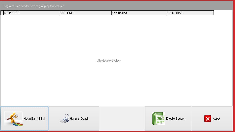 Excel ‘ den aktarılmış Chek Digit Hesaplanamamış veya yanlış hesaplanmış barkodları tespit eder. Hatalarını Raporlar.
